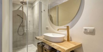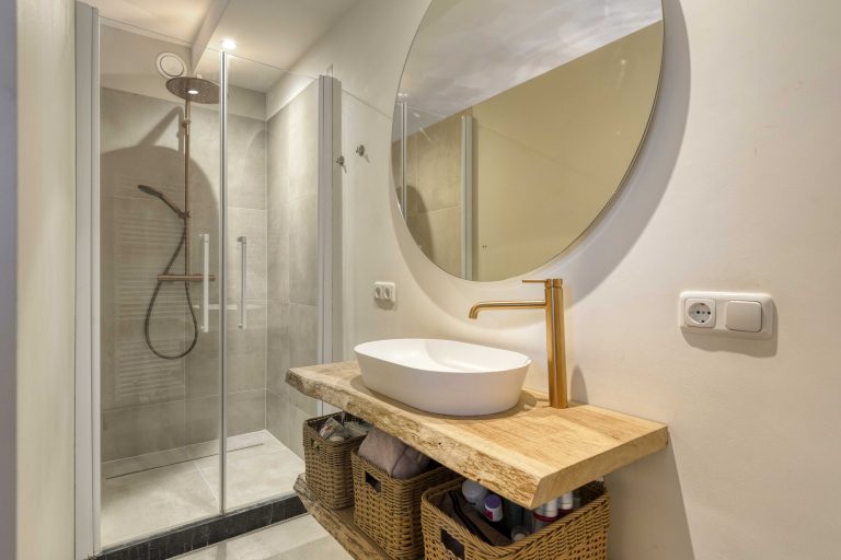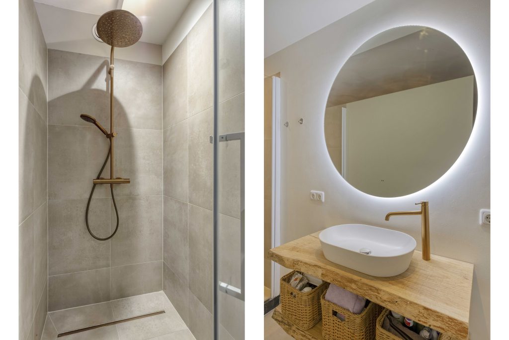 – Moderne badkamer met inloopdouche en stijlvol wastafelmeubel