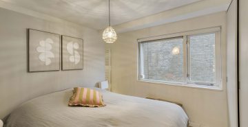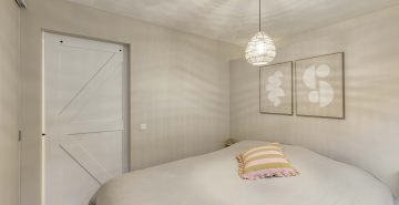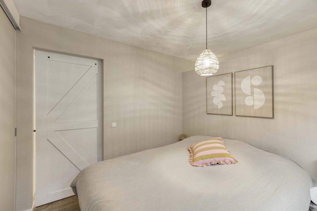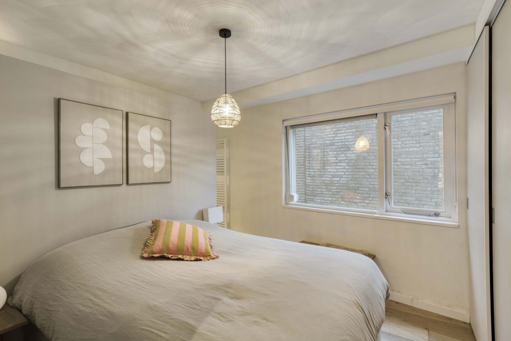 De slaapkamer is rustig gelegen en biedt een comfortabele plek om te ontspannen De slaapkamer beschikt over een ruime vaste kledingkast. Aangrenzend vind je de moderne badkamer, uitgevoerd in een lichte en tijdloze kleurstelling, voorzien van een inloopdouche met regen- en handdouche en een stijlvol wastafelmeubel met waskom.