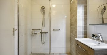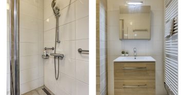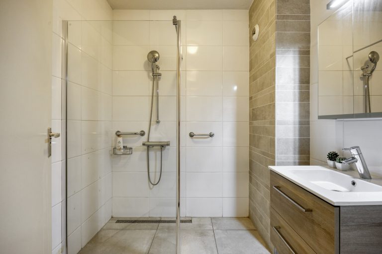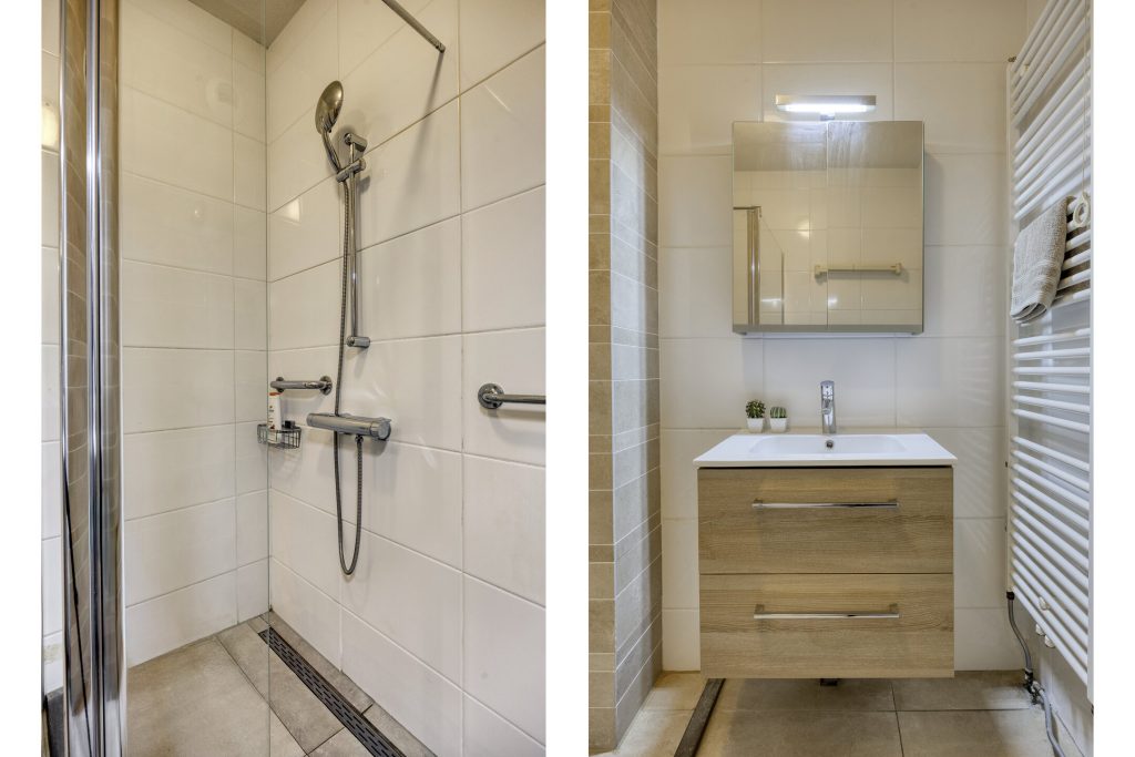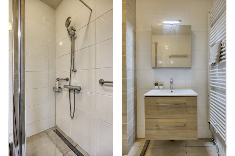 – Badkamer met inloopdouche en wastafel met badmeubel