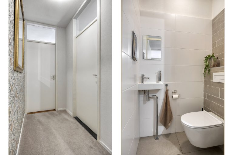 – De hal is voorzien van een videofoon, een garderobe en toiletruimte