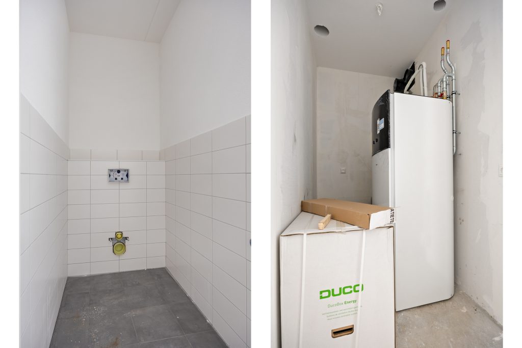 In de inpandige berging bevinden zich de technische installaties, waaronder de warmtepomp en WTW-installatie, uiteraard volledig voorbereid op duurzaam en energiezuinig wonen. Nieuwbouw betekent hier: comfort, lage energielasten en klaar voor de toekomst.