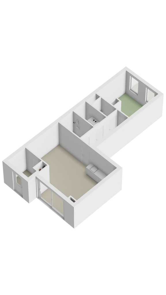 De L-vormige woonkamer met open keuken vormt het hart van de woning. Dankzij de praktische indeling ontstaat een fijne leefruimte met volop mogelijkheden voor een comfortabele zithoek en een gezellige eethoek. De schuifpui verbindt binnen moeiteloos met buiten en geeft toegang tot het eigen zonneterras.