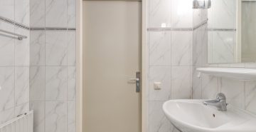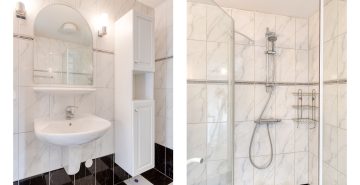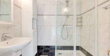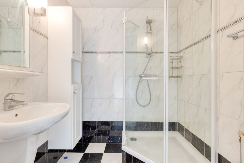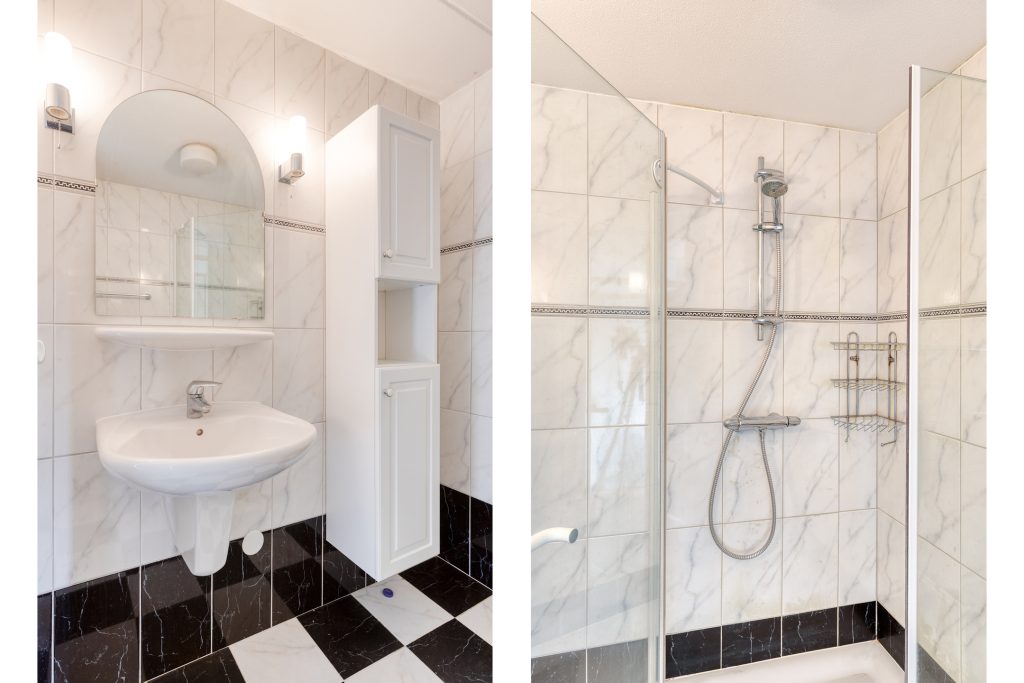 – Badkamer met douche en wastafel