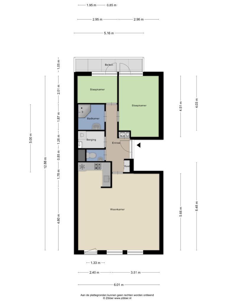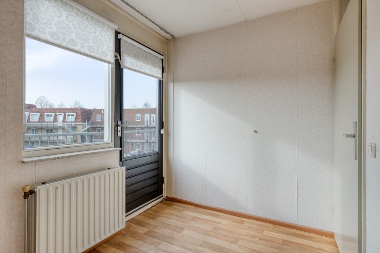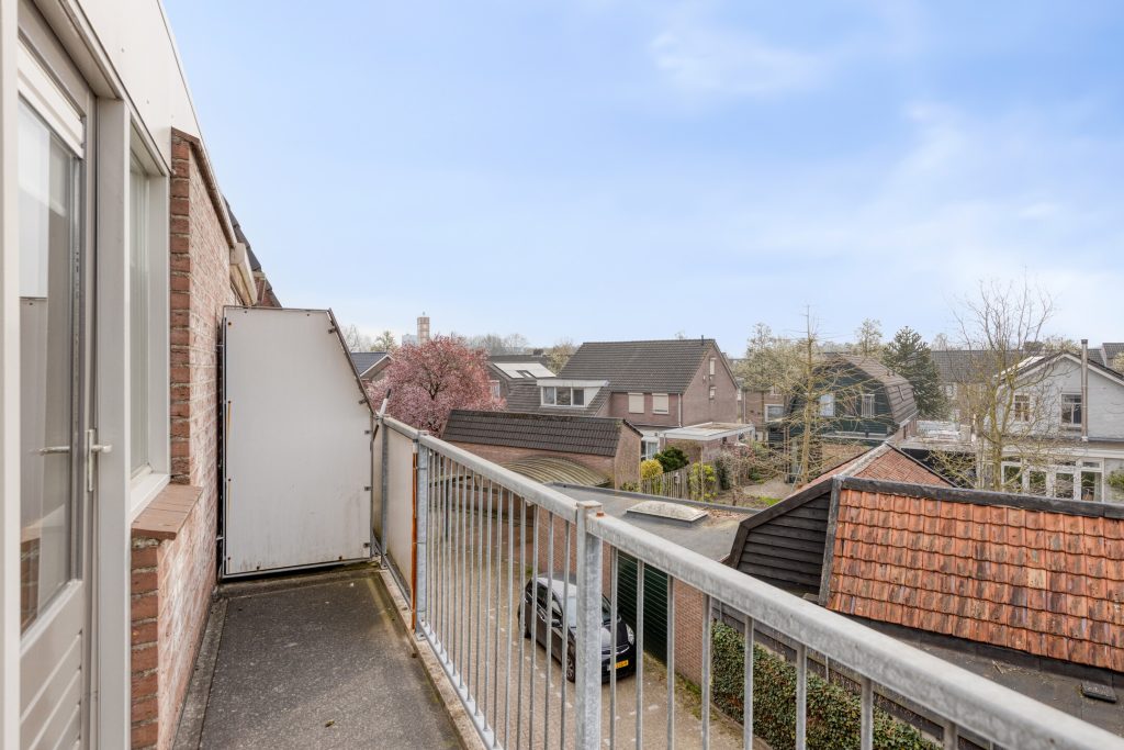 Aan de achterzijde bevinden zich twee slaapkamers, beiden met toegang tot het zonnige balkon op het zuiden. Hier geniet je in de ochtend van een kop koffie in de zon en ’s avonds van de laatste zonnestralen. De badkamer is praktisch ingericht met een inloopdouche en wastafel, en het toilet is separaat gesitueerd.