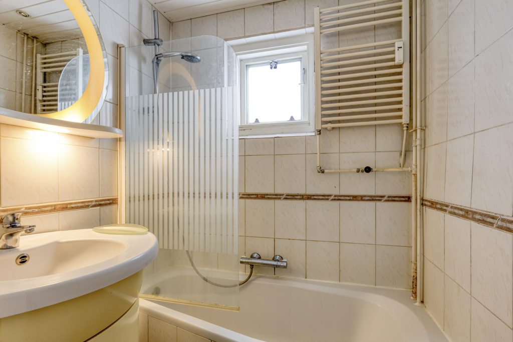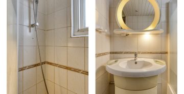 – Badkamer voorzien van een ligbad met douche en een wastafel met badmeubel