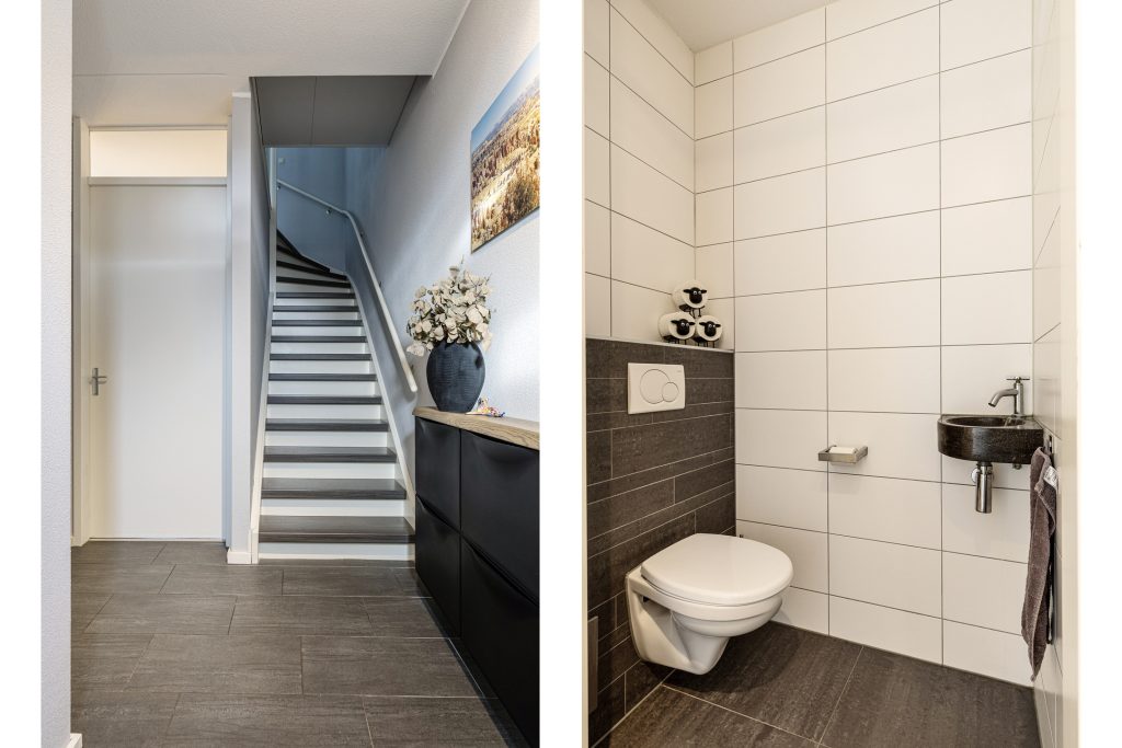 Bij binnenkomst betreed je de hal met toiletruimte, meterkast en trapopgang naar de eerste verdieping. Vanuit hier kom je in de ruime en lichte woonkamer met open keuken. De openslaande tuindeuren aan de achterzijde zorgen voor een prettige lichtinval en een mooie verbinding tussen binnen en buiten. De open keuken is compleet uitgevoerd en voorzien van een 4-pits inductiekookplaat met afzuigkap, koelkast, vriezer, combi-oven en vaatwasser. De gehele begane grond is voorzien van comfortabele vloerverwarming en afgewerkt met een laminaatvloer. De strak gestucte en gespoten wanden en plafonds geven het geheel een moderne en verzorgde uitstraling.