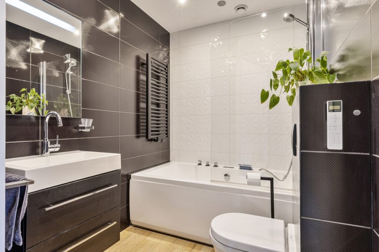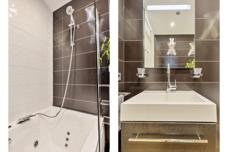 – Complete badkamer met Whirlpool ligbad/douche, wastafelmeubel en toilet