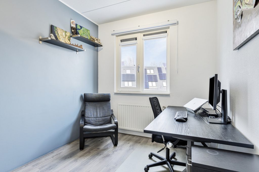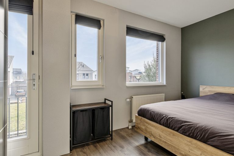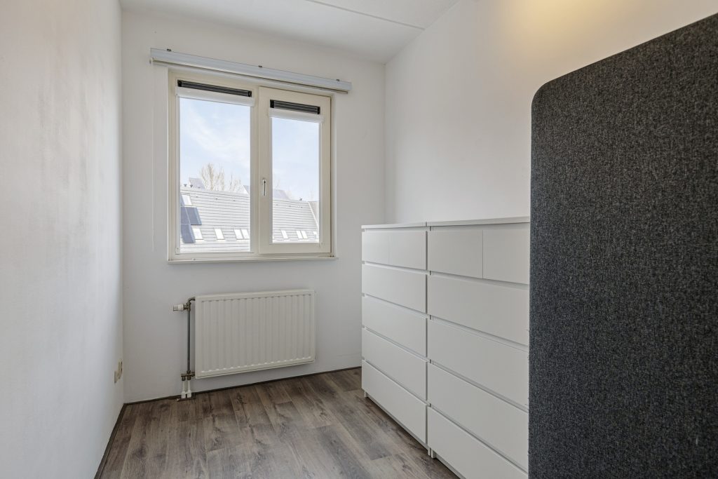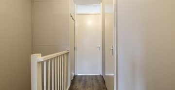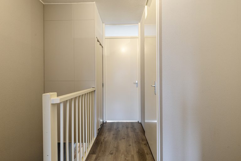 Op de eerste verdieping bevinden zich drie ruime slaapkamers, waarvan één is voorzien van een charmant Frans balkon. Alle slaapkamers zijn netjes afgewerkt met een laminaatvloer, spuitwerk op de plafonds en stucwerk en spachtelputz op de wanden. De volledig betegelde badkamer is ingericht met een Whirlpool ligbad met douche, een wastafel met meubel en een zwevend toilet. Daarnaast is er een praktische wasruimte met de witgoedaansluitingen, de cv-opstelling en de mechanische ventilatie-unit.