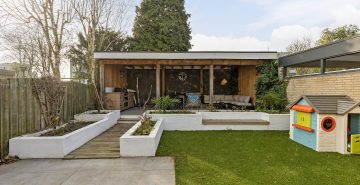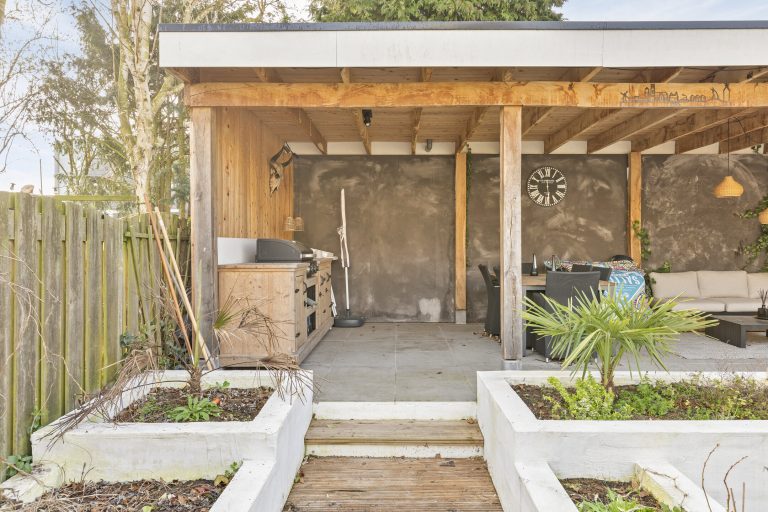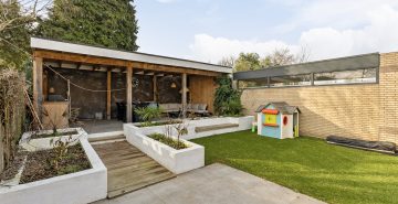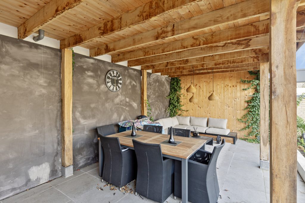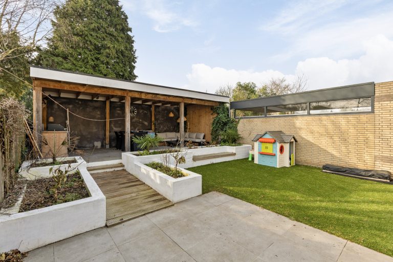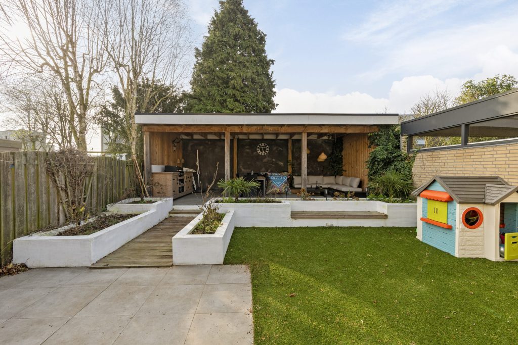 – Royale achtertuin gelegen op het zonnige zuiden met gezellige overkapping en onderhoudsarm aangelegd
