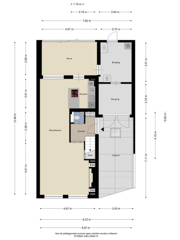 Bij binnenkomst kom je in de hal met garderobe, toiletruimte en trapopgang naar de eerste verdieping. Het toilet is modern afgewerkt en voorzien van een zwevend toilet en een fonteintje. Vanuit de hal stap je de ruime, U-vormige woonkamer binnen. Hier zorgt de sfeervolle elektrische haard voor extra warmte en gezelligheid. Daarnaast beschikt de woonkamer over een praktische trapkast, ideaal voor extra bergruimte. De grote raampartijen zorgen voor veel natuurlijk licht en geven de ruimte een prettige, open sfeer. Aan de achterzijde van de woning bevindt zich de moderne open keuken, die in 2022 is vernieuwd. Het eigentijdse keukenmeubel met kookeiland vormt een echte blikvanger en is uitgerust met diverse hoogwaardige inbouwapparatuur, waaronder een 4-pits Bora kookplaat, koelkast, combi-oven, koffiezetapparaat en vaatwasmachine. De keuken staat in directe verbinding met de serre, die dankzij de schuifpui een mooie overgang vormt naar de achtertuin. Aansluitend bevindt zich een praktische wasruimte met aansluitingen voor witgoed.