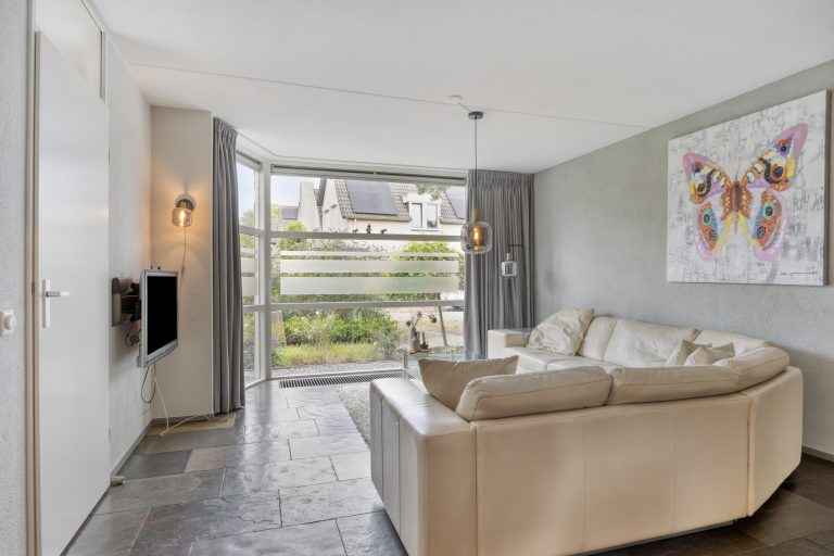 – Riante woonkamer met erker, openslaande tuindeuren en vloerverwarming