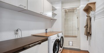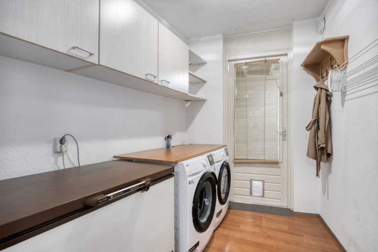 – Praktische bijkeuken met veel opbergruimte en aansluitingen voor wasapparatuur