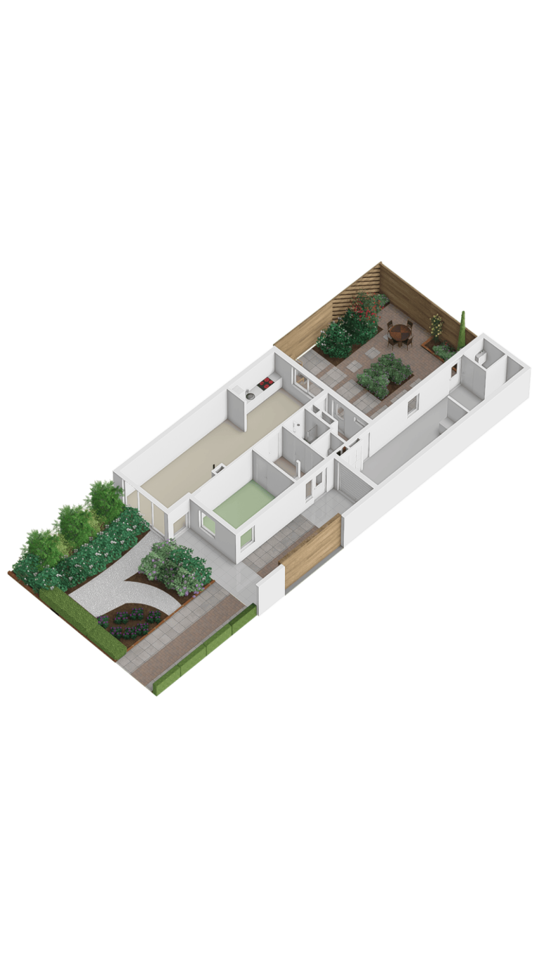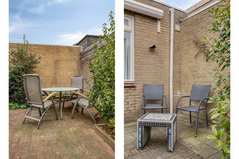Ook buiten is het goed toeven. De achtertuin is volledig omsloten, biedt volop privacy en ligt op het noordwesten. Perfect voor wie graag tot in de avond van het buitenleven geniet. De tuin is voorzien van nette bestrating, groen en tuinverlichting, waardoor het hier in elk seizoen aangenaam vertoeven is.