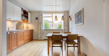 De oprit biedt ruimte voor meerdere auto’s en leidt naar een ruime garage met elektrische sectionaaldeur, ideaal voor wie gemak en bergruimte belangrijk vindt. De keurig aangelegde voortuin zorgt meteen voor een verzorgde eerste indruk. Binnen word je ontvangen in een verrassend diepe en lichte woonkamer, waar grote raampartijen zorgen voor een prettige lichtinval gedurende de dag. De open keuken sluit hier naadloos op aan en is van alle gemakken voorzien, waaronder een inductiekookplaat, afzuigkap, koelkast, combi-oven en vaatwasser. Alles is hier gericht op comfort en gemak.