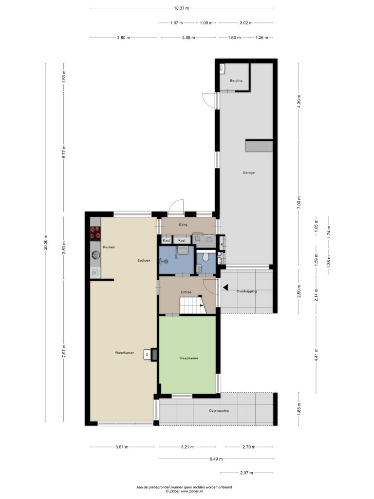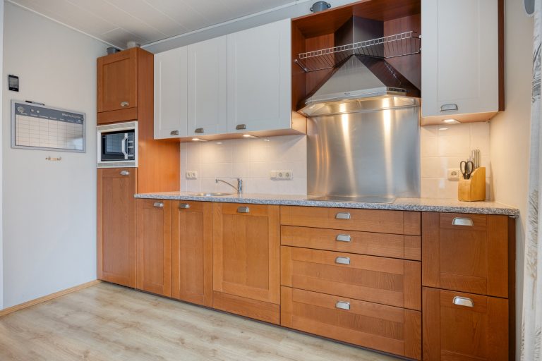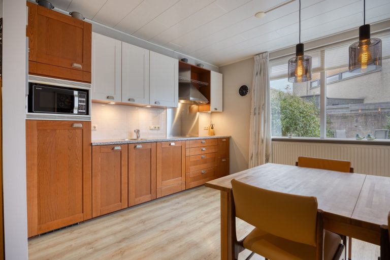 – Functionele bijkeuken met witgoedaansluitingen en inbouwkasten