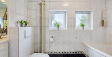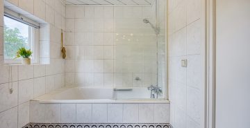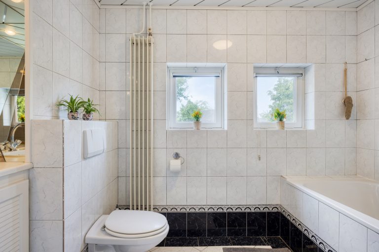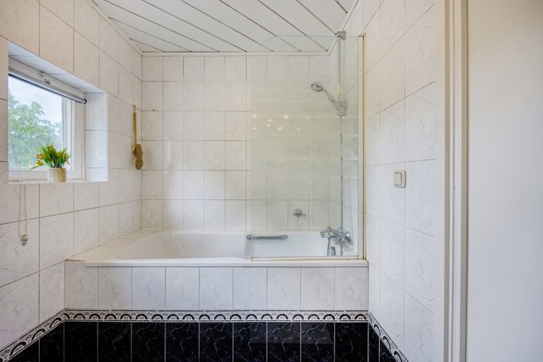 – Badkamer met ligbad, douche, toilet en badkamermeubel