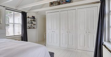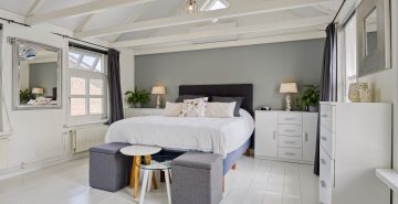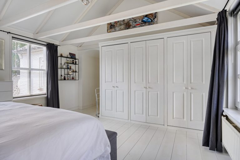 Op de eerste verdieping leidt de overloop naar de vier slaapkamers en badkamer. De master bedroom is gericht op het oosten zodat de eerste zonnestralen altijd aanwezig zijn in de vroege ochtend. Daarnaast biedt deze kamer ruime inbouwkasten met fraaie balken en een hoge nok voor een chique uitstraling.