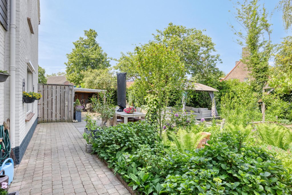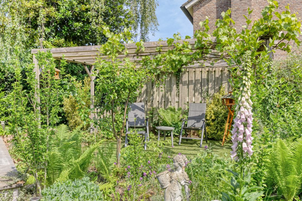 Buiten vindt u een omheinde tuin op het noorden, welke diep genoeg is om de nodige zon-uren te vangen. De tuin is prettig ingedeeld met de mooi ingerichte beplanting, een terrasoverkapping en aansluitende vijver om het buitenleven ten volle te kunnen benutten !