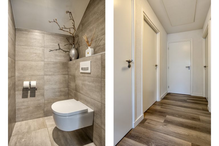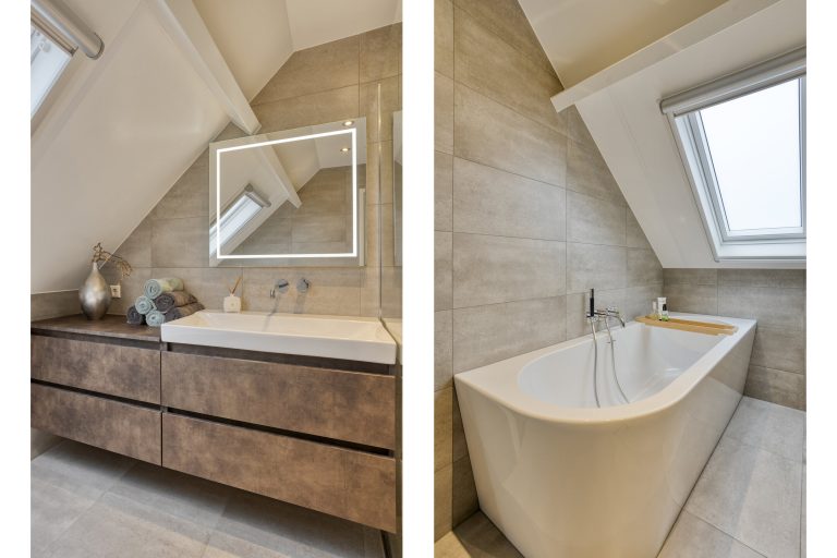 Op de eerste verdieping bevinden zich drie keurig afgewerkte slaapkamers, elk met dezelfde stijlvolle afwerking als beneden. De badkamer, vernieuwd in 2019, is een oase van comfort met een ligbad, inloopdouche en wastafelmeubel. Dankzij de elektrische vloerverwarming stap je hier altijd in een aangename ruimte. Op de overloop bevindt zich bovendien een separate toiletruimte; praktisch en comfortabel.