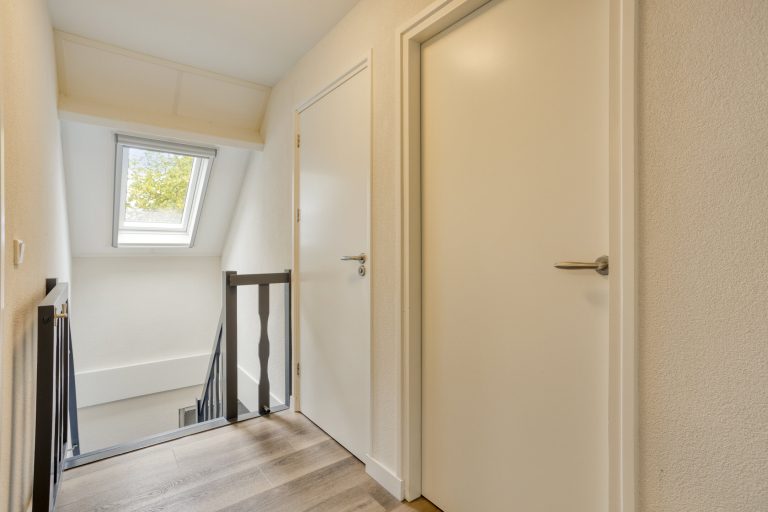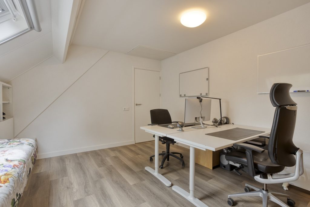 Via twee vlizotrappen bereik je de tweede verdieping. Aan de ene zijde bevindt zich een praktische bergzolder met de cv-opstelling; aan de andere zijde een zolderkamer met dakraam, die zich uitstekend leent als hobbyruimte of werkplek.