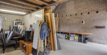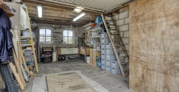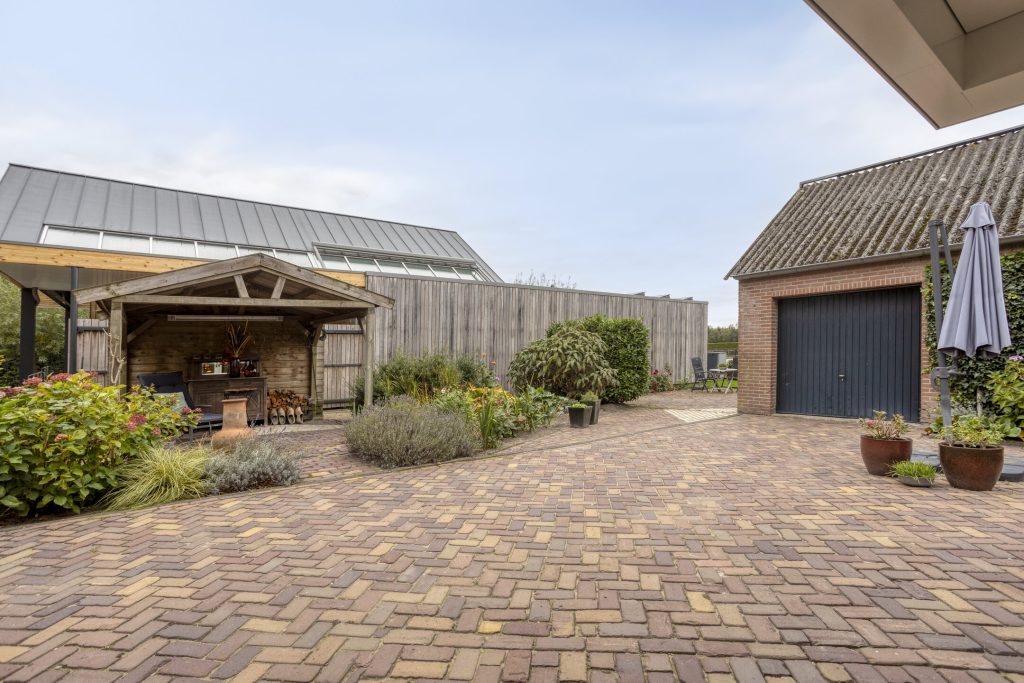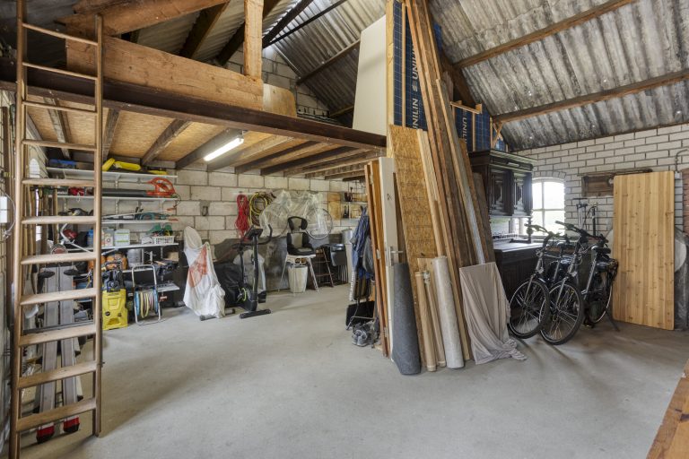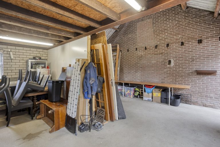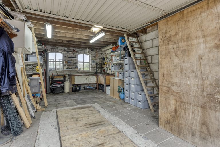 De vrijstaande stenen garage en berging zijn volledig uitgerust met elektra, water en een handige vliering, bereikbaar vanaf twee kanten. De garage is voorzien van een kanteldeur en biedt volop ruimte voor opslag of het stallen van een voertuig. Daarnaast is er op de eigen oprit nog eens ruimte voor meerdere voertuigen.