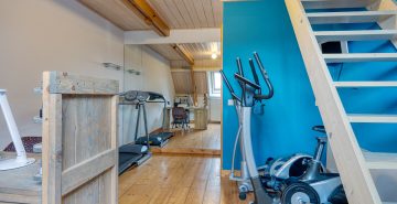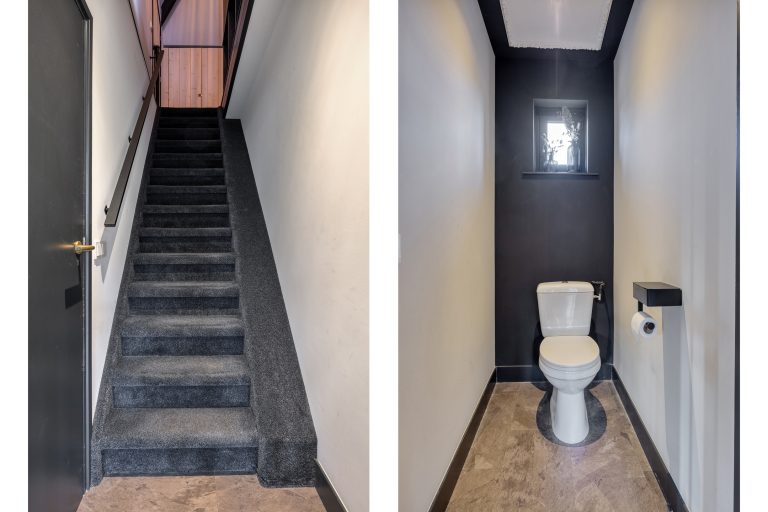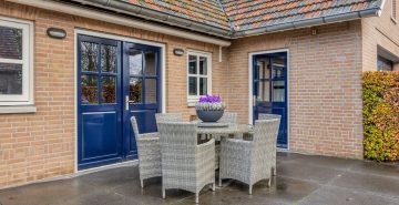 Het bijgebouw vormt een volwaardig woonhuis op zichzelf. De begane grond beschikt over een nette hal met meterkast en een lichte, ruime woonkamer met speelhoek en vaste kast. De open keuken is compleet uitgerust met een 4-pits inductiekookplaat met afzuigkap, combi-oven, vaatwasser en koel-vriescombinatie. De PVC-vloer en het strakke stucwerk geven het geheel een moderne uitstraling. De badkamer op de begane grond is geheel betegeld, voorzien van vloerverwarming en ingericht met een ligbad, inloopdouche en dubbele wastafel met meubel. Op de eerste verdieping liggen twee royale slaapkamers; één met vaste kasten en de andere met airco, ideaal voor warme zomerdagen.