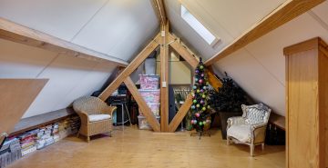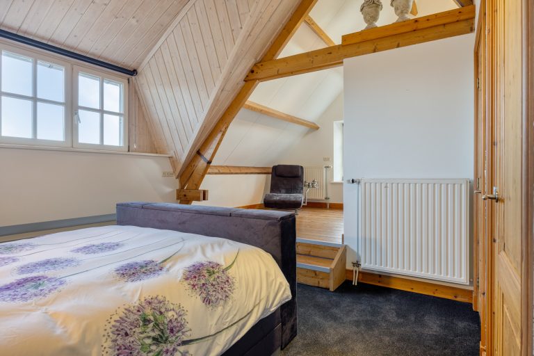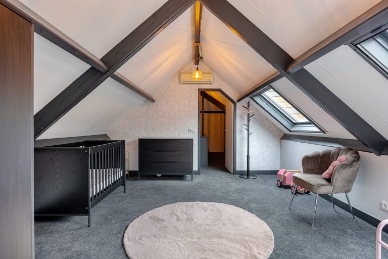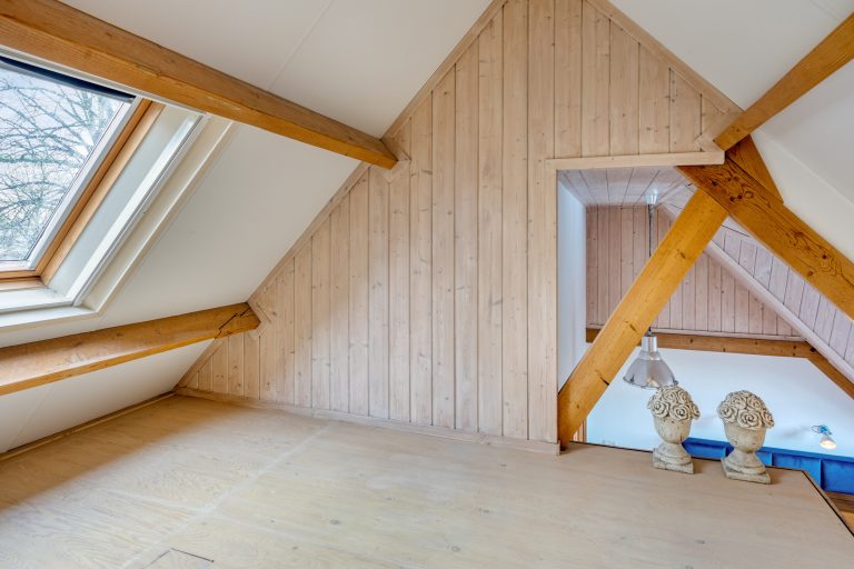 Via een vaste trap is de tweede verdieping bereikbaar, momenteel in gebruik als royale bergzolder. Dankzij de ruime opzet en goede hoogte is deze verdieping eenvoudig om te vormen tot extra kamer of een hobbyruimte.