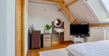 Op de eerste verdieping grenzen maar liefst vijf ruime slaapkamers aan de overloop. De Master Bedroom springt direct in het oog door de speelse indeling met split level, vide en twee vaste kasten. Eén van de slaapkamers beschikt over witgoedaansluitingen, een cv-opstelling en een fonteintje. De moderne badkamer is in 2024 volledig vernieuwd en hoogwaardig afgewerkt met een ligbad, inloopdouche, dubbele wastafel met meubel, vloerverwarming en ingebouwde speakers; een luxe ruimte voor ontspanning.
