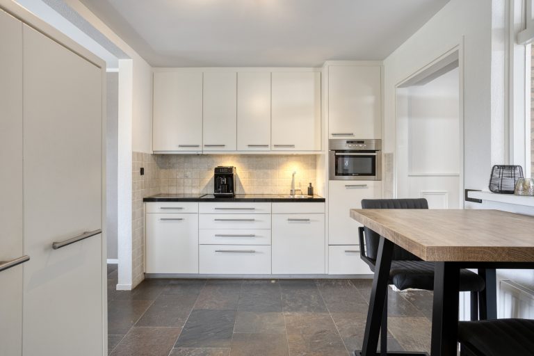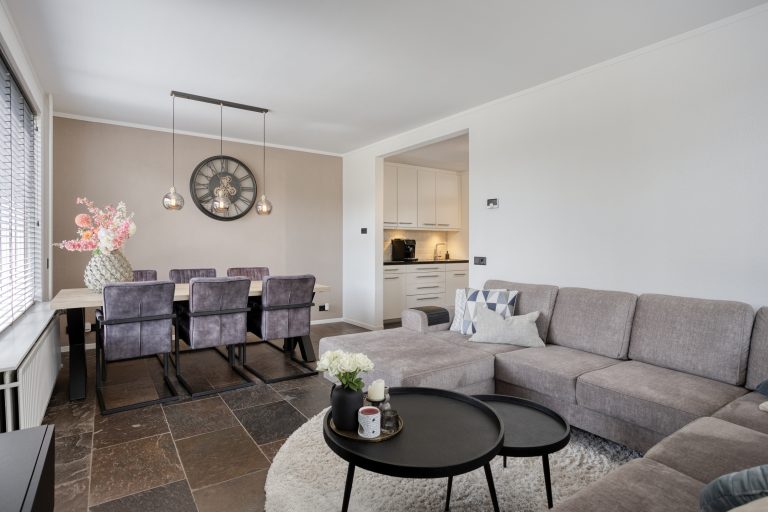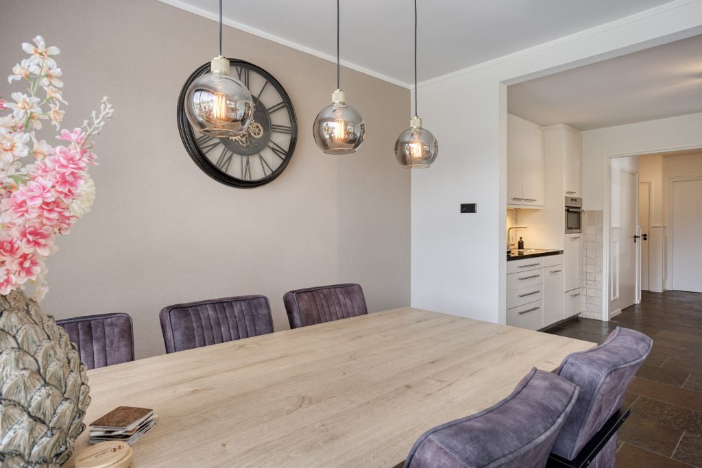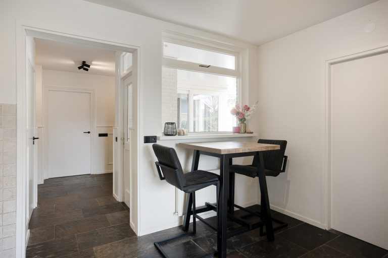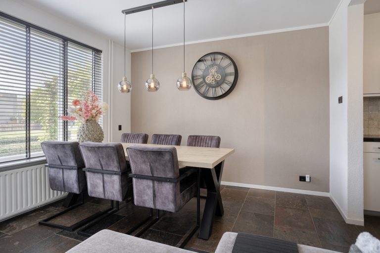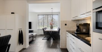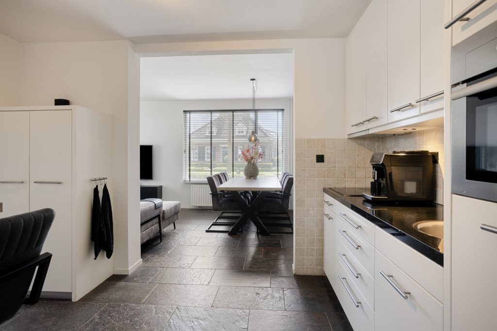 Je komt binnen via de hal, waar zich de vernieuwde meterkast, een praktische trapkast, de garderobe en de trapopgang naar de eerste verdieping bevinden. Vanuit de hal heb je direct toegang tot de keuken. De keuken is modern uitgevoerd en van alle gemakken voorzien. Zo beschikt deze over een 4-pits inductiekookplaat, afzuigkap, combi-oven, vaatwasser en koelkast. Er is voldoende werk- en bergruimte. Vanuit de keuken loop je door naar de eet- en woonkamer. Deze leefruimte is royaal van opzet en dankzij de twee grote raampartijen geniet je hier van veel natuurlijk licht. De ruimte biedt volop mogelijkheden voor een comfortabele zithoek en een grote eettafel, ideaal voor gezellige avonden met familie en vrienden.