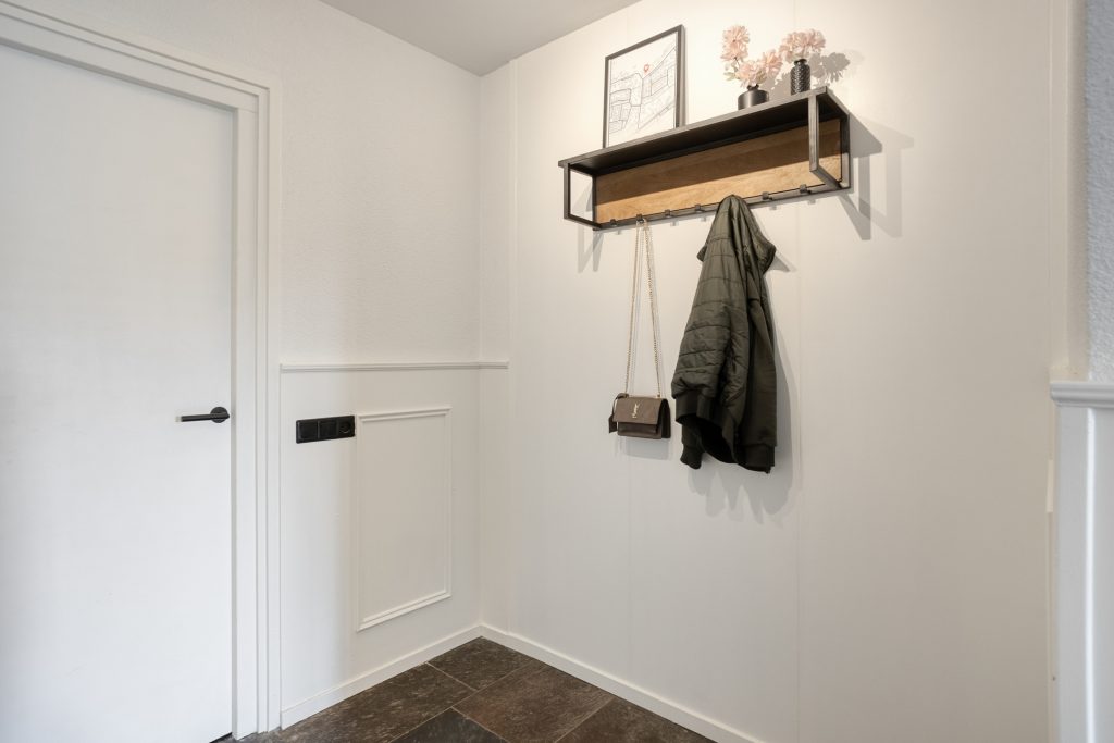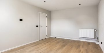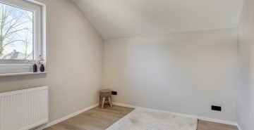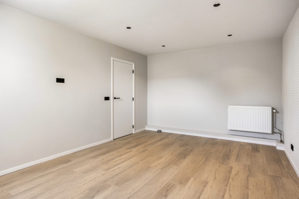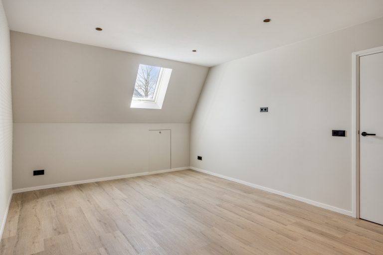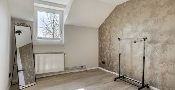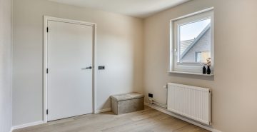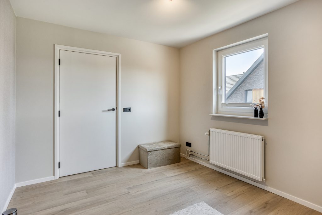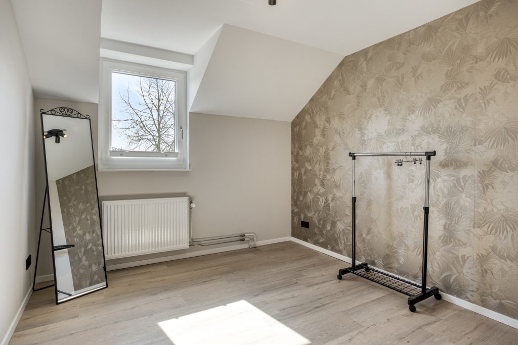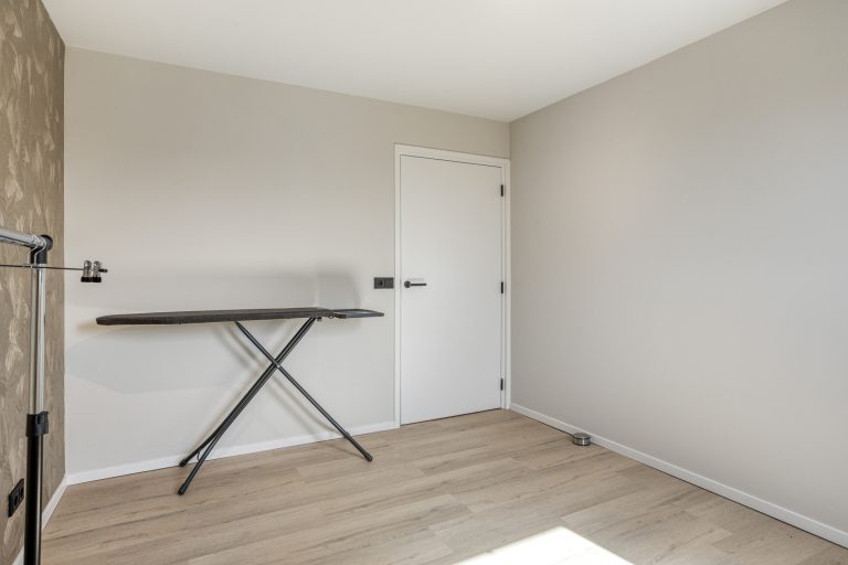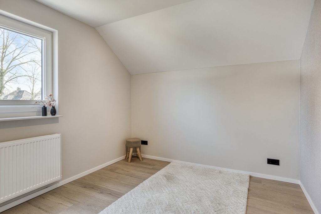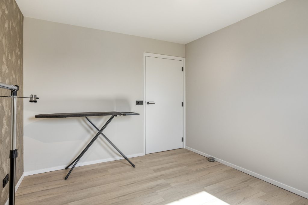 Via de vaste trap bereik je de eerste verdieping. Deze verdieping is in 2024 volledig verbouwd, opnieuw ingedeeld en voorzien van een moderne afwerking. De overloop is vormgegeven als een lange gang. Hier is een praktische inbouwkast gerealiseerd, ideaal voor extra bergruimte en met mogelijkheid voor het plaatsen van witgoed. Op deze verdieping bevinden zich drie royale slaapkamers. Alle kamers zijn netjes afgewerkt met een pvc-vloer, strak gestuukte plafonds en een combinatie van stucwerk en behang op de wanden. De kamers zijn stuk voor stuk comfortabel van formaat en multifunctioneel in gebruik, bijvoorbeeld als slaapkamer, werkkamer of hobbyruimte.