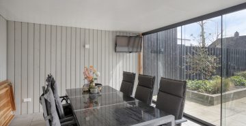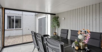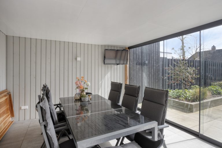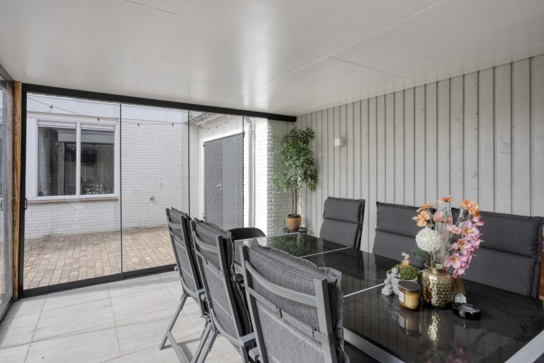 – Overkapping en afsluitbare veranda met glazen pui
