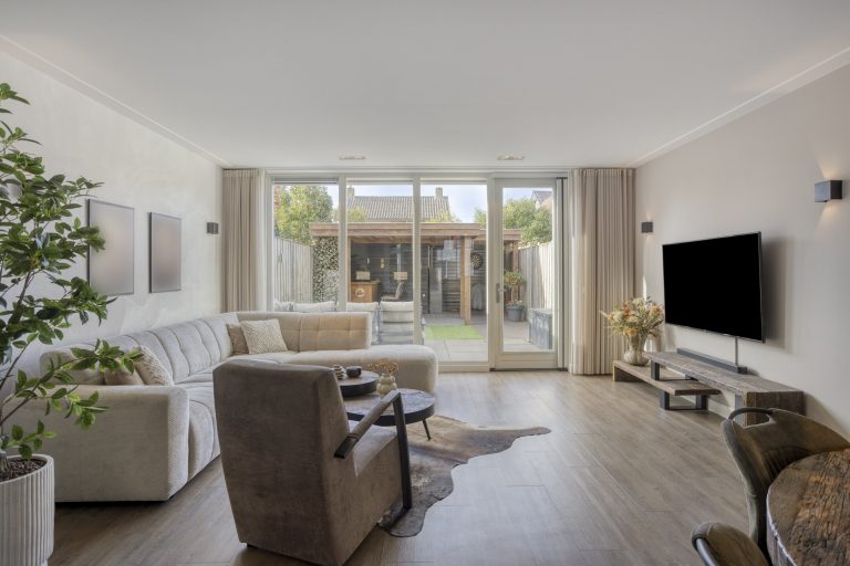 Bij binnenkomst stap je in een lichte, sfeervolle woonkamer met een loopdeur naar de zonnige achtertuin. De fraaie lichtinval en de verzorgde afwerking geven het geheel een warme, eigentijdse uitstraling. De moderne keuken is een fijne plek voor wie graag kookt: uitgerust met een 4-pits inductiekookplaat, afzuigkap, vaatwasmachine, combi-oven en koelkast biedt hij alles wat je nodig hebt om met gemak een heerlijke maaltijd te bereiden.