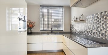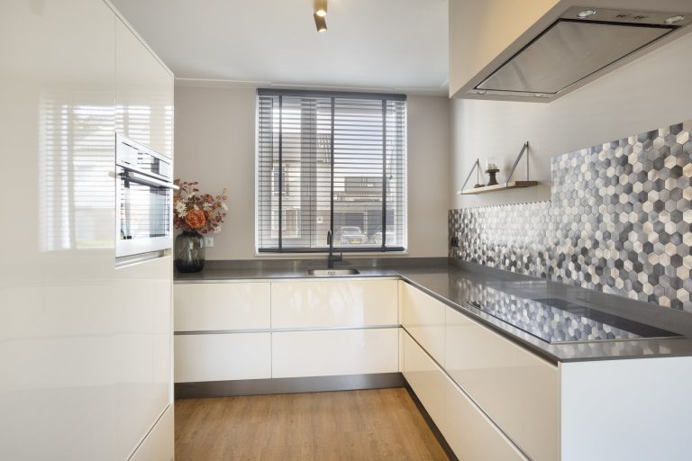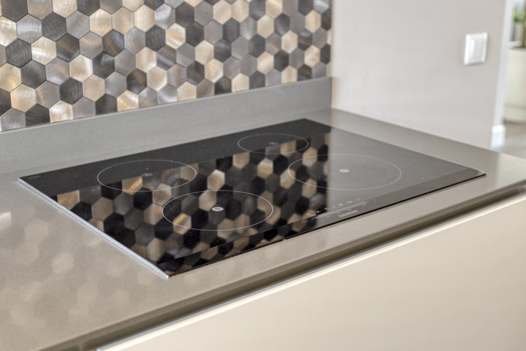 – Keuken met 4-pits inductiekookplaat, afzuigkap, vaatwasmachine, combi-oven en koelkast