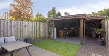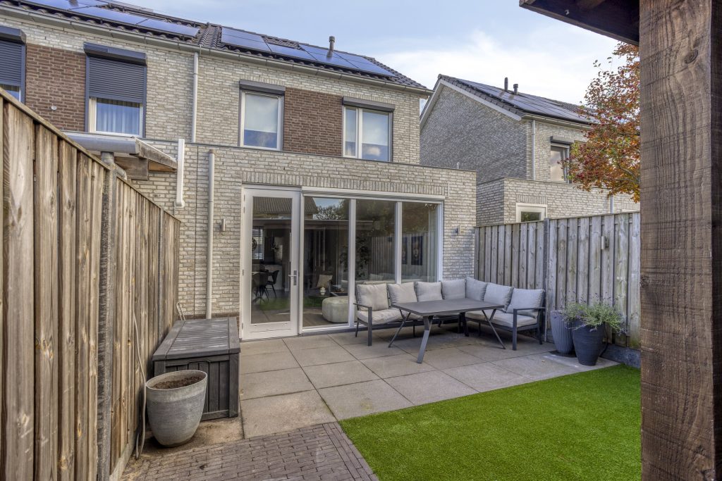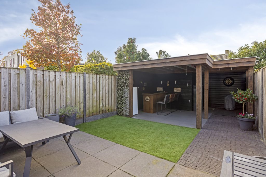 Achter de woning ligt een heerlijke tuin op het zuidwesten: een fijne plek om na een drukke dag tot rust te komen. De tuin is geheel afgescheiden, bereikbaar via een achterom en voorzien van een knusse overkapping waar je het hele jaar door kunt genieten van het buitenleven.