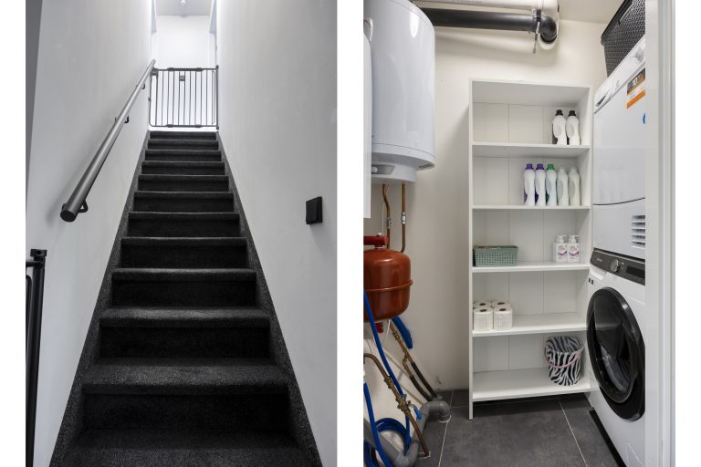 De tweede verdieping biedt ruimte aan nog twee ruime slaapkamers, eveneens voorzien van airco en rolluiken. In totaal beschikt de woning over maar liefst vijf airco’s, wat zorgt voor een aangenaam binnenklimaat in elk seizoen. De afwerking is overal van hoog niveau en de woning ademt rust, kwaliteit en eigentijdse klasse.