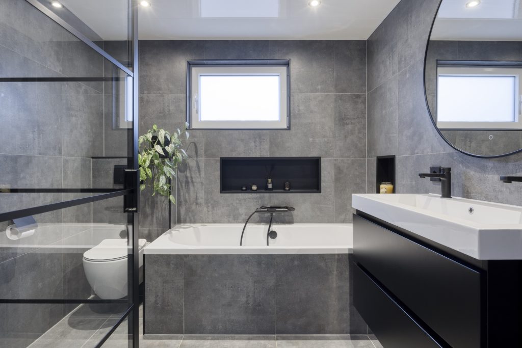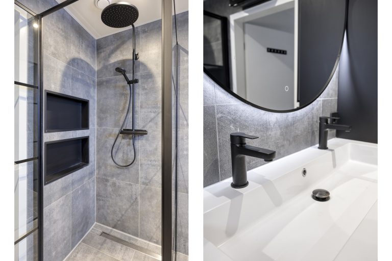 – Badkamer is compleet met een ligbad, dubbele wastafel met badmeubel, zwevend toilet, douche, een verwarmde spiegel, (elektrische) vloerverwarming, mechanische ventilatie en een designradiator