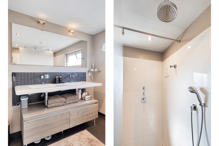 – Badkamer met inloopdouche, dubbele wastafel met badmeubel