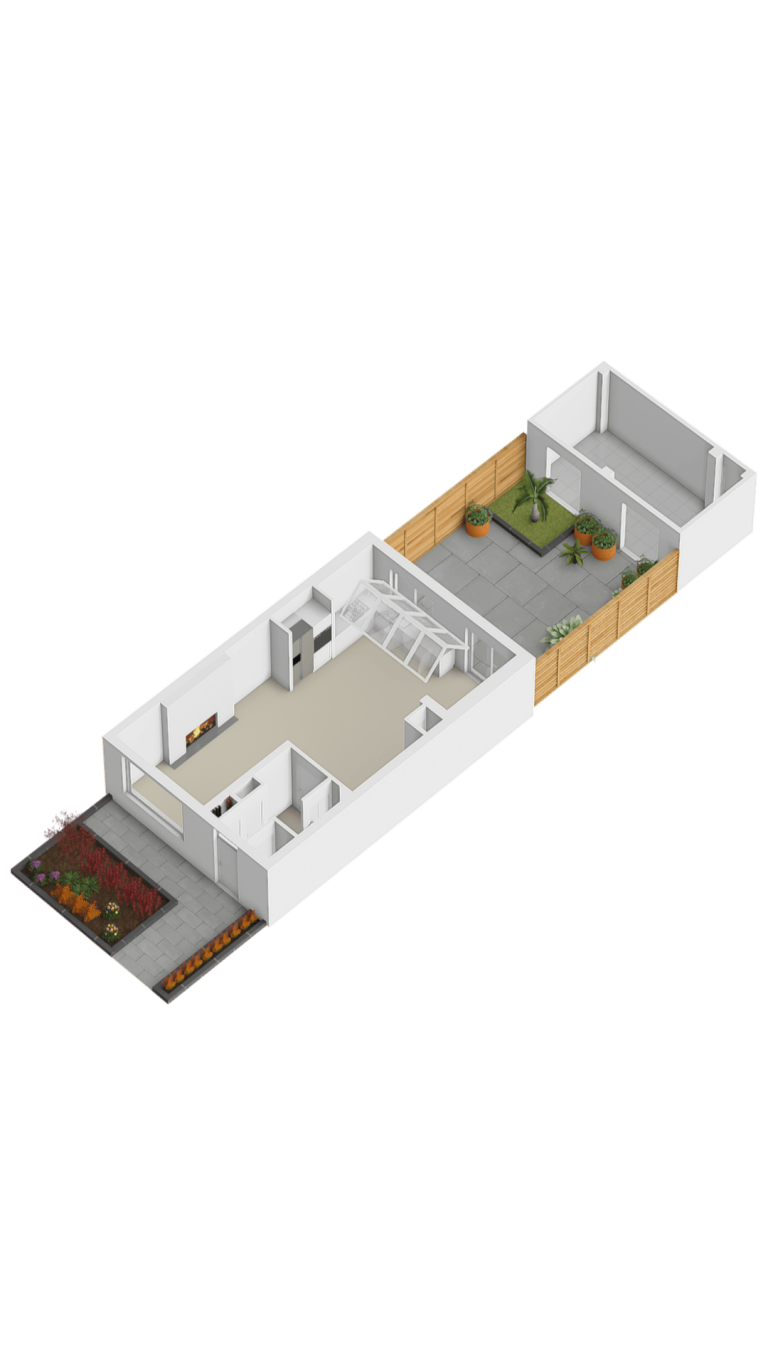 – Achtertuin gelegen op het westen, geheel afgescheiden en met achterom