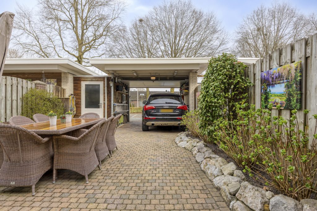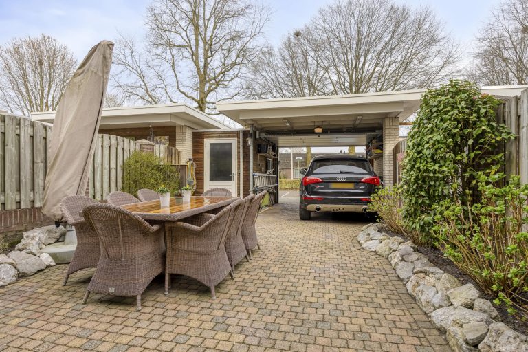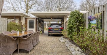 Buiten is het net zo verzorgd. De geheel omsloten achtertuin ligt op het noordoosten, is onderhoudsarm aangelegd en beschikt over een achterom. Daarnaast is er een vrijstaande stenen berging met elektra, ideaal voor fietsen en opslag. De carport met elektra en elektrische deur maakt het geheel compleet en biedt extra gemak en comfort.
