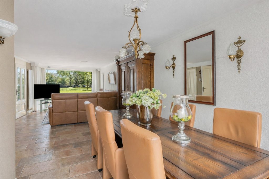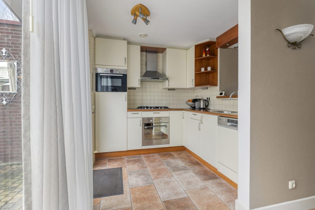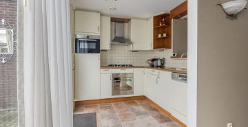 Via de hal met garderobe en handige kelderkast kom je binnen in een huis dat direct prettig aanvoelt. De toiletruimte is modern uitgevoerd met een wandcloset en fonteintje. De woonkamer wordt gekenmerkt door royale raampartijen die zorgen voor veel daglicht en een fijne, open sfeer; een plek waar je je moeiteloos thuis voelt, of je nu geniet van een rustige avond of gasten ontvangt. De halfopen keuken sluit hier naadloos op aan en is uitgerust met diverse inbouwapparatuur, waaronder een 5-pits gasfornuis, afzuigkap, koelkast en combi-oven. Praktisch en functioneel, met alles binnen handbereik.