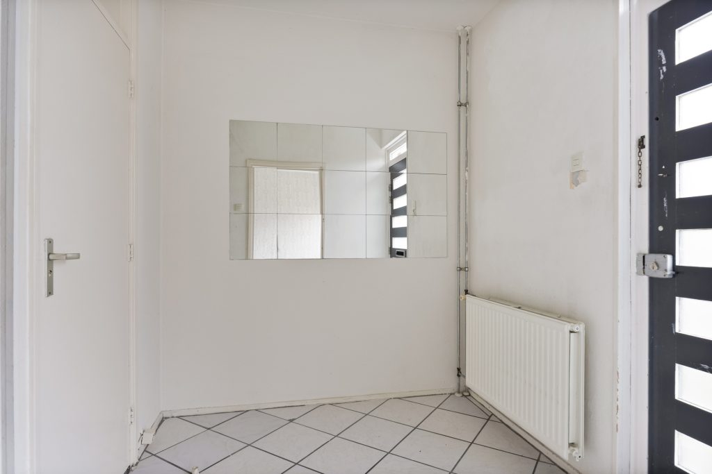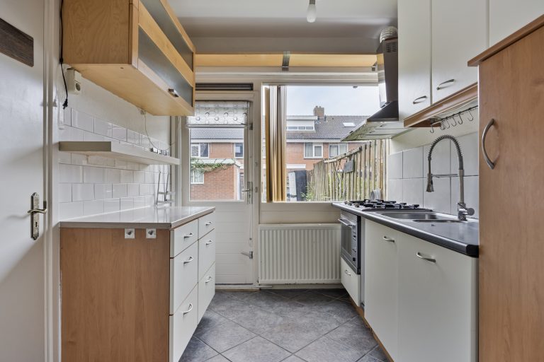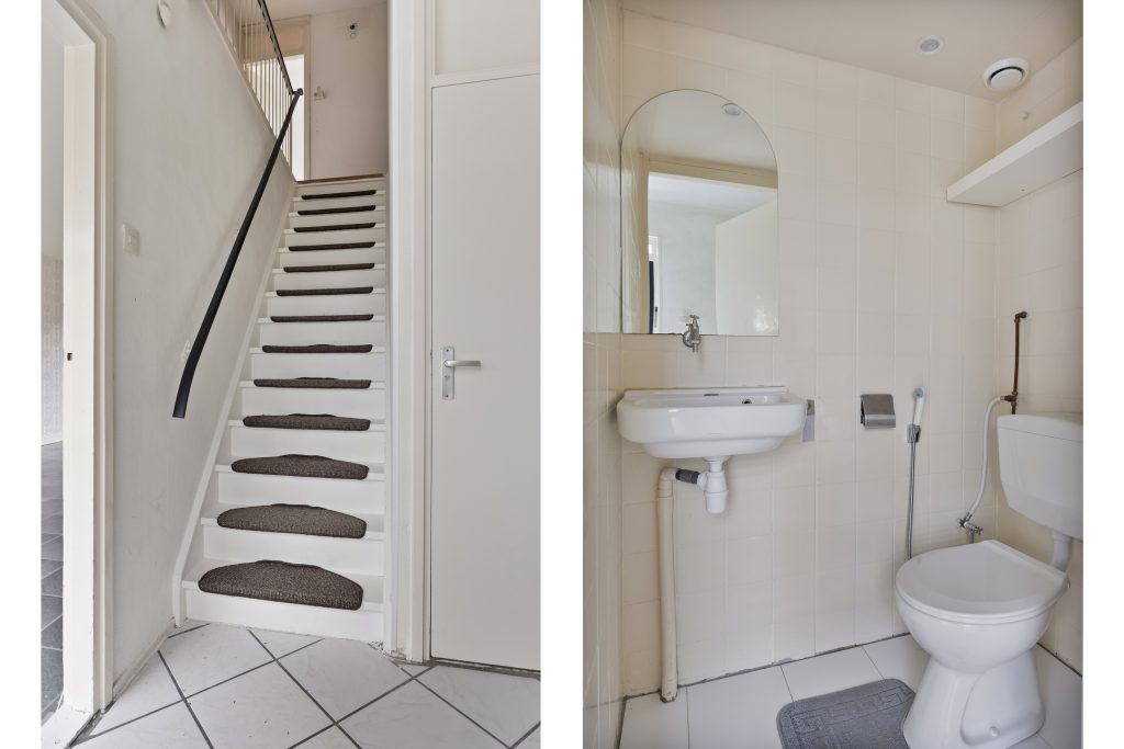 Bij binnenkomst op de begane grond word je ontvangen in de hal, waar zich het toilet en de trapopgang naar de eerste verdieping bevinden. De woonkamer voelt direct licht en ruim dankzij de grote raampartijen aan zowel de voor- als achterzijde, die voor een prettige natuurlijke lichtinval zorgen. De aangrenzende dichte keuken is praktisch ingedeeld en beschikt over de witgoedaansluitingen en een handige trappenkast. De begane grond beschikt over vloerisolatie en dubbele beglazing.