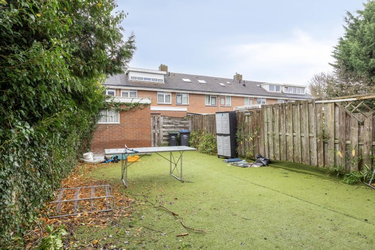 De achtertuin, gelegen op het noorden, is volledig afgescheiden en via een achterom bereikbaar. Hier kun je met gemak een fijne groene oase creëren, een plek om te ontspannen of om kinderen veilig te laten spelen. De vrijstaande stenen berging, uitgerust met elektra, biedt daarnaast volop ruimte voor het bergen van fietsen, tuingereedschap of hobbyspullen.