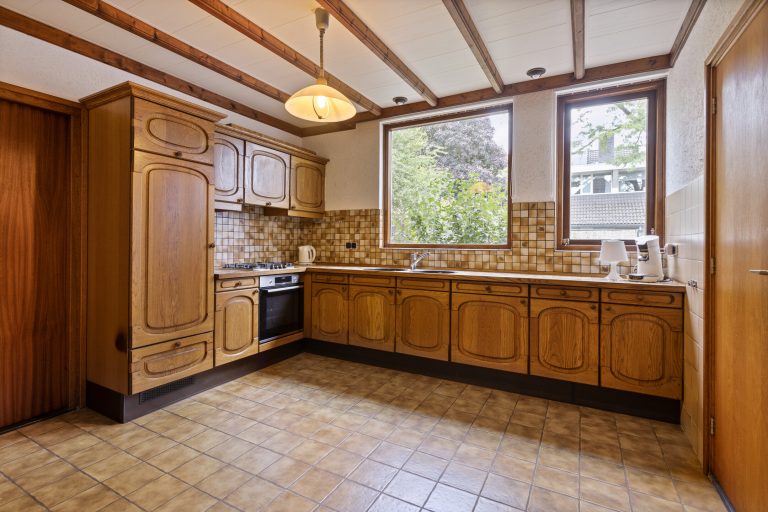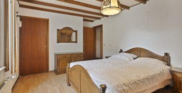 Stap binnen en ervaar de sfeer van de ruime woonkamer, waar de houthaard meteen in het oog springt. Een gezellige plek voor lange winteravonden bij het vuur. De gesloten keuken is voorzien van een 4-pits gasfornuis, afzuigkap, oven en koelkast. Extra bijzonder: onder de keuken bevindt zich een ruime kelder met volledige stahoogte, perfect voor voorraad of als praktische opbergruimte. Direct naast de keuken is de bijkeuken, met een toiletruimte en de aansluiting voor witgoed en een wastafel.