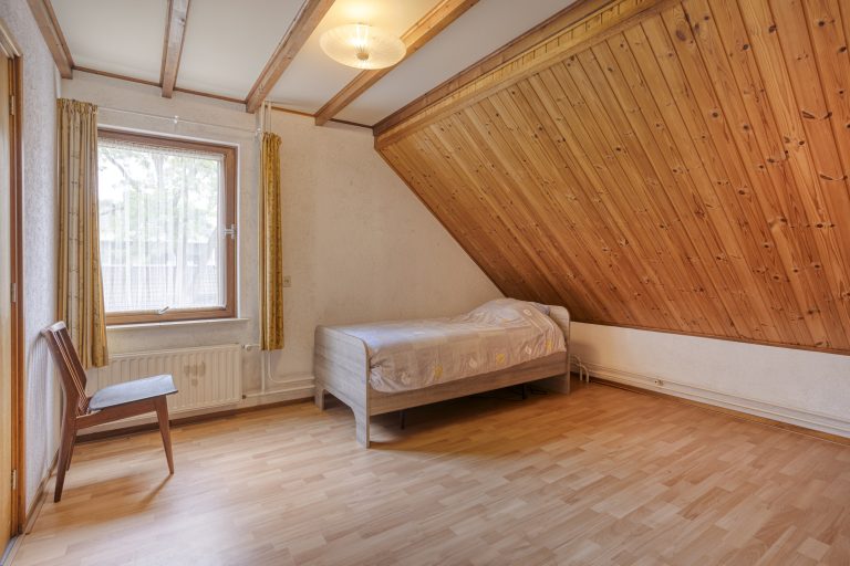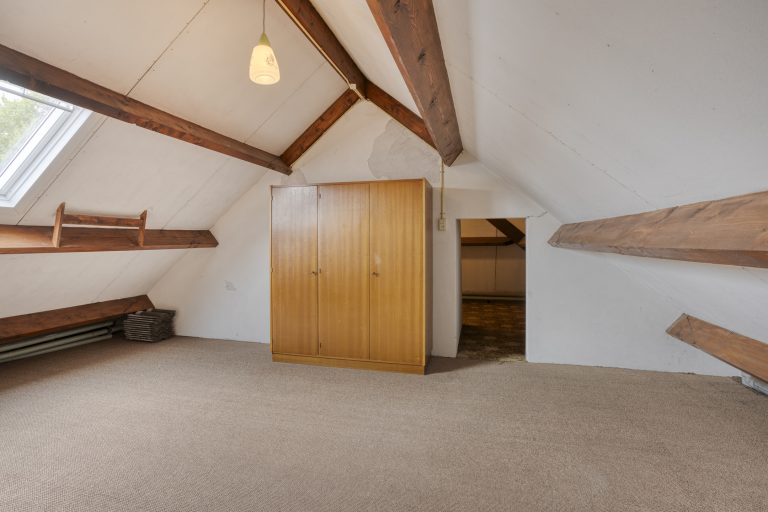 Op de eerste verdieping zijn vier slaapkamers, de badkamer en een separate toiletruimte te vinden. De badkamer beschikt over een ligbad, een douchecabine, een wastafel en een radiator. Via de vaste trap bereik je de tweede verdieping. Dankzij het dakraam is er veel licht, waardoor deze ruimte, die nu in gebruik is als bergzolder, eenvoudig kan worden omgetoverd tot een extra slaapkamer of hobbykamer.