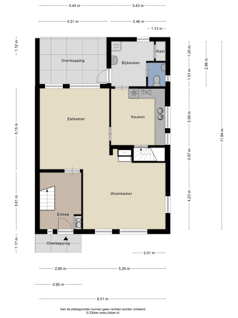 – Functionele bijkeuken met witgoedaansluitingen en wastafel