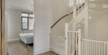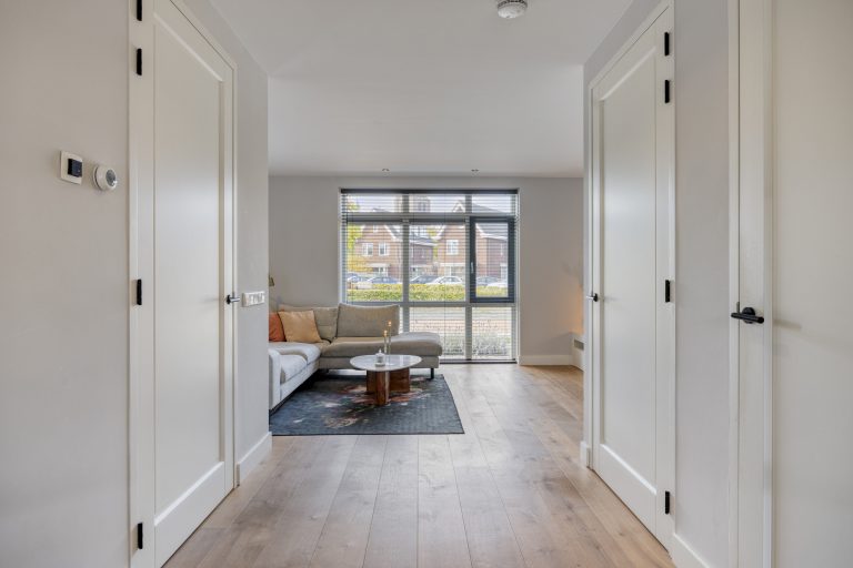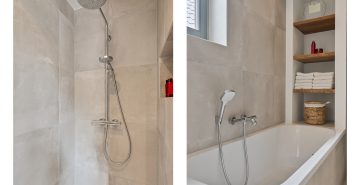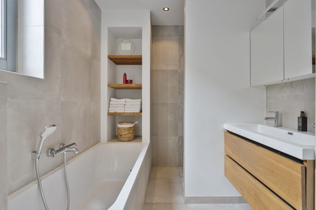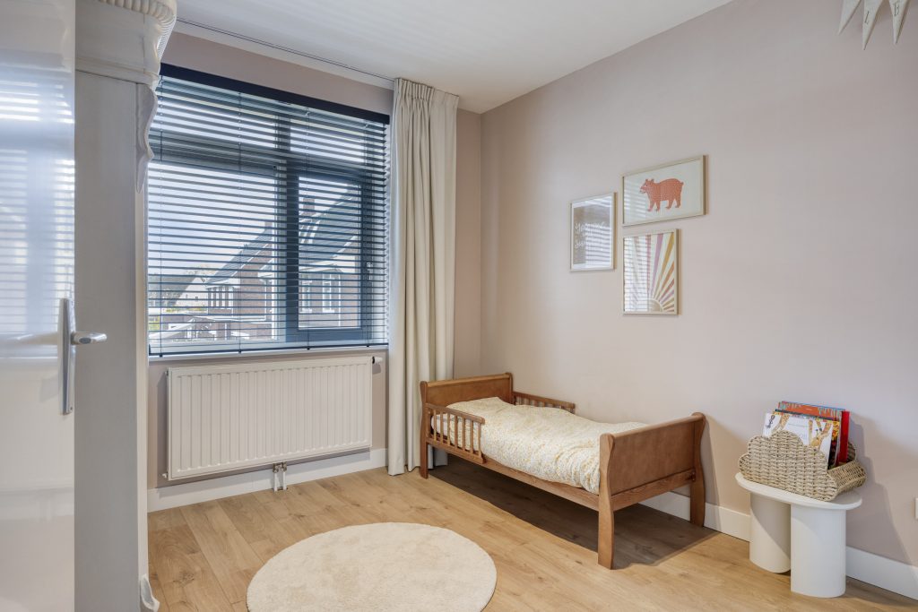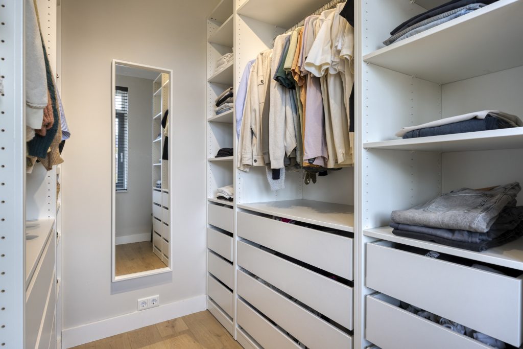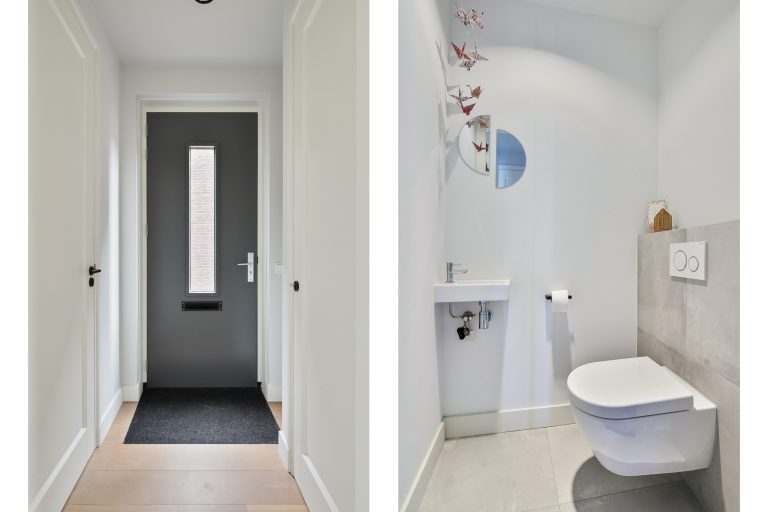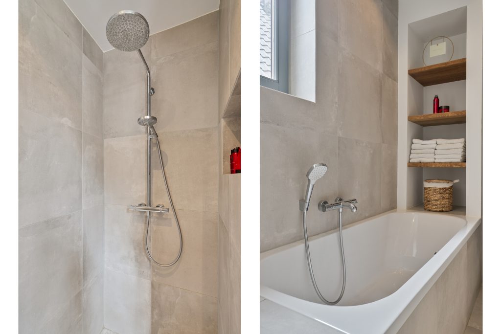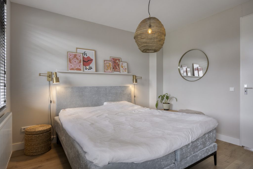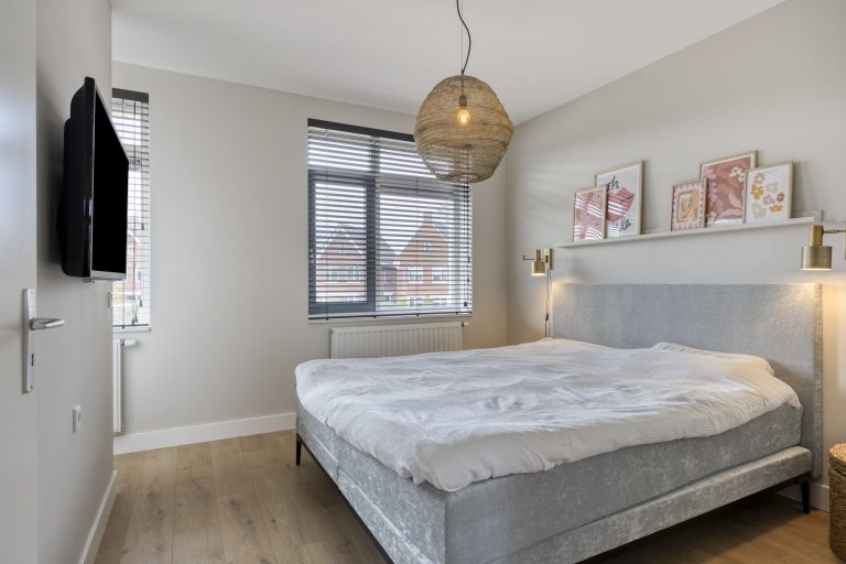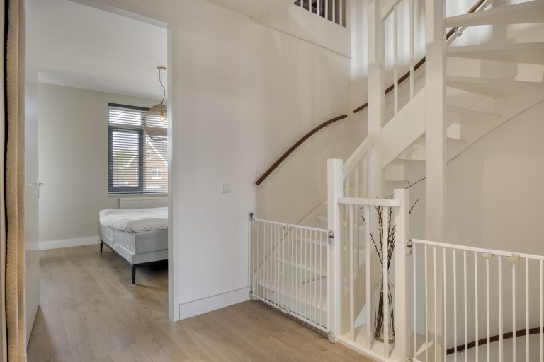 Op de eerste verdieping bevinden zich drie ruime slaapkamers, stuk voor stuk keurig afgewerkt met laminaatvloeren en strak stucwerk. De master bedroom is extra bijzonder dankzij de ruime walk-in-closet. De moderne badkamer is een echte eyecatcher: luxe uitgevoerd met een ligbad, inloopdouche, dubbel wastafelmeubel en zwevend toilet, en natuurlijk ook hier vloerverwarming voor optimaal comfort.