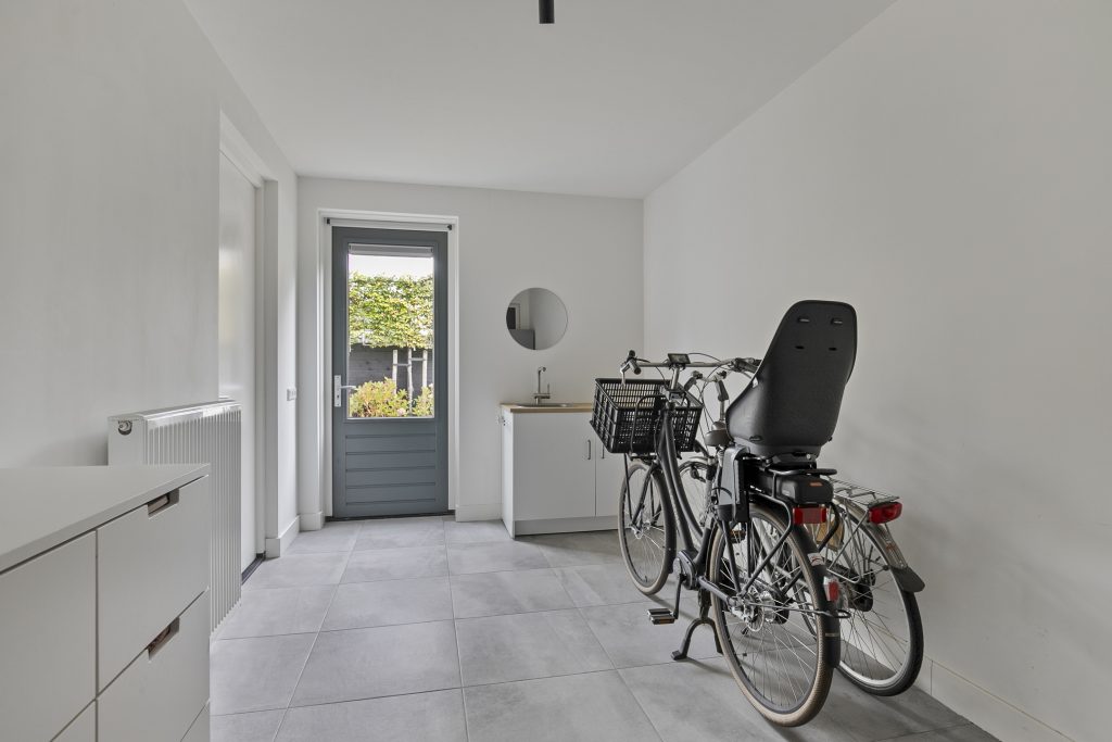 De aangebouwde stenen garage vormt een groot pluspunt van deze woning. Deze ruimte is volledig geïsoleerd, verwarmd en voorzien van water en elektra. Dankzij de openslaande deuren aan de voorzijde en een loopdeur naar de tuin is de garage veelzijdig inzetbaar, of dat nu als kantoor, speelruimte of gewoon als garage is.