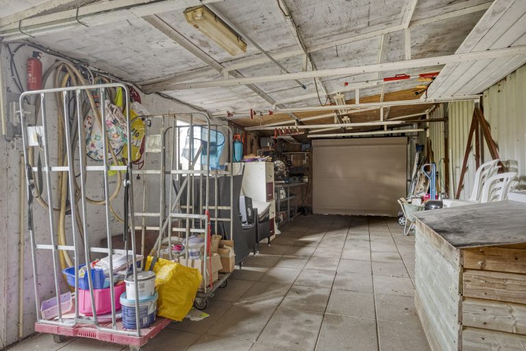 Wat echt opvalt, is de enorme garage. Met ruimte voor maar liefst drie auto’s én voorzien van elektra, is dit een droomplek voor de hobbyist, verzamelaar of iemand die simpelweg veel opslagruimte nodig heeft. Aan ruimte geen gebrek dus, zowel binnen als buiten.