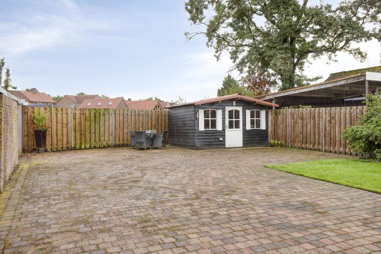 Op steenworp afstand van het bruisende centrum van Heesch wacht een bijzondere verrassing ! Een karaktervolle twee-onder-een-kapwoning met een ongekend diepe, zonnige achtertuin die je zelden tegenkomt. Zodra je de tuin instapt, voel je het: rust, ruimte en privacy komen hier op een unieke manier samen. De achtertuin is volledig omsloten en door zijn royale diepte voelt het alsof je een privépark binnenloopt. Een plek waar de seizoenen tot leven komen, waar je geniet van lange zomeravonden op het terras, kinderen vrij kunnen spelen op het gazon en waar tuinliefhebbers hun hart ophalen. Dankzij de beregeningsinstallatie blijft alles het hele jaar door prachtig groen, en met tuinverlichting krijgt ook de avond een extra vleugje sfeer. De praktische houten berging maakt het plaatje compleet: volop ruimte voor al je tuinmeubilair, gereedschap of dat lang uitgestelde projectje.