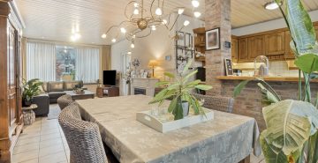 Aansluitend ligt de halfopen keuken, compleet ingericht met een keramische kookplaat, combi-oven, afzuigkap, koelkast en vaatwasmachine. Hier kook je met gemak voor het gezin of vrienden, terwijl je altijd in contact blijft met de rest van het gezelschap. De moderne badkamer met inloopdouche, dubbele wastafel met badmeubel, designradiator en vloerverwarming maakt de begane grond compleet.